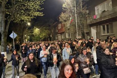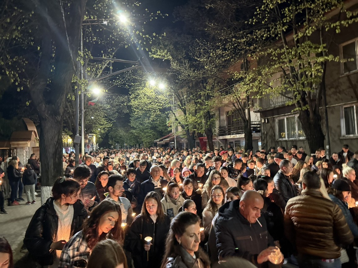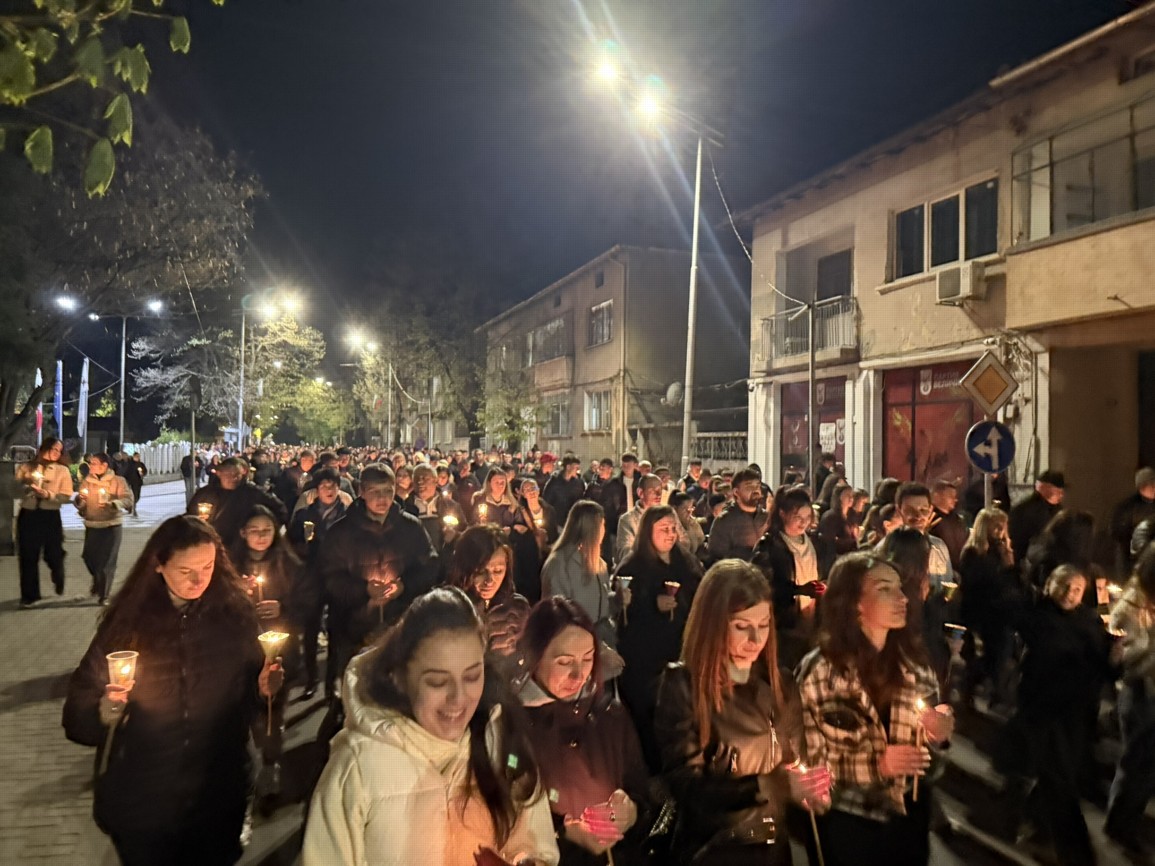 Пред вратите на храма, в очакване на благата вест, миряните потропаха три пъти – древен символ на Възкресението. И когато думите отекнаха в нощта – „Христос Воскресе!“ – „Воистина Воскресе!“ – те бяха не просто поздрав, а израз на жива вяра, която ни събира и ни прави по-добри.