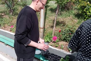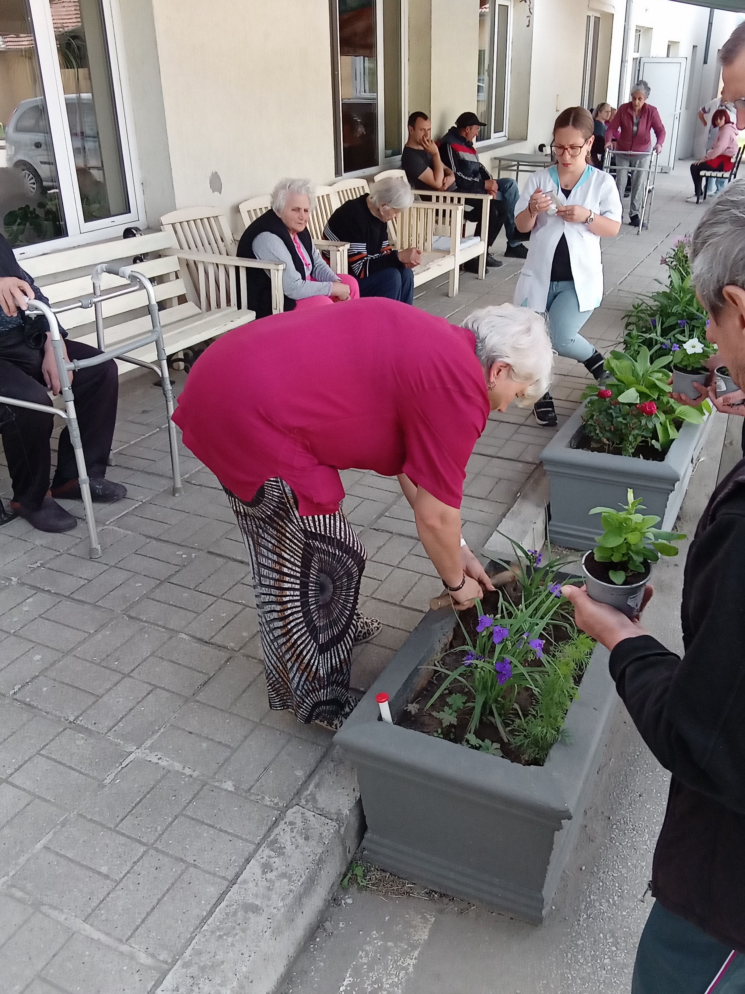 В изпълнение на дейностите по проек : ”Личностно развитие на лицата с психични разстройства и интелектуални затруднения "Нови умения и социално включване", №BG05M9OP001-2.082-0003-C01, осъществяван с финансовата подкрепа на Оперативна програма ”Развитие на човешките ресурси” 2014-2020, съфинансиран от Европейския социален фонд на Европейския съюз в двора на социалните центрове: Център за настаняване от семеен тип за пълнолетни лица с психични разстройства, Защитено жилище за лица с психични разстройства и Център за настаняване на пълнолетни лица с деменция – гр. Симитли, бяха създадени красиви цветни арт композиции.