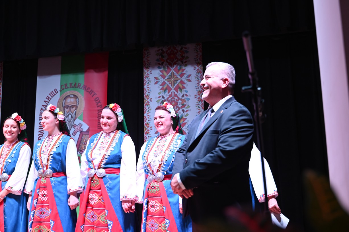 В концертната програма се включиха: Женска певческа група „Коматиница“ към НЧ „Св. Климент Охридски – 1922“ – гр. Симитли, с ръководител Илиян Юручки; Мъжка певческа група „Веселие“ към НЧ „Св. Климент Охридски – 1922“ – гр. Симитли, с ръководител Илиян Юручки; ДТС „Изворче“ към НЧ „Св. Климент Охридски – 1922“ – гр. Симитли, с ръководител Любомир Марянски; Детска певческа група към НЧ „Св. Климент Охридски – 1922“ – гр. Симитли, с ръководител Елица Боянска и Вокален ансамбъл „Езерец“ към НЧ „Никола Й. Вапцаров“ – гр. Благоевград, с ръководител Илиян Юручки, с които стартира празничния концерт.