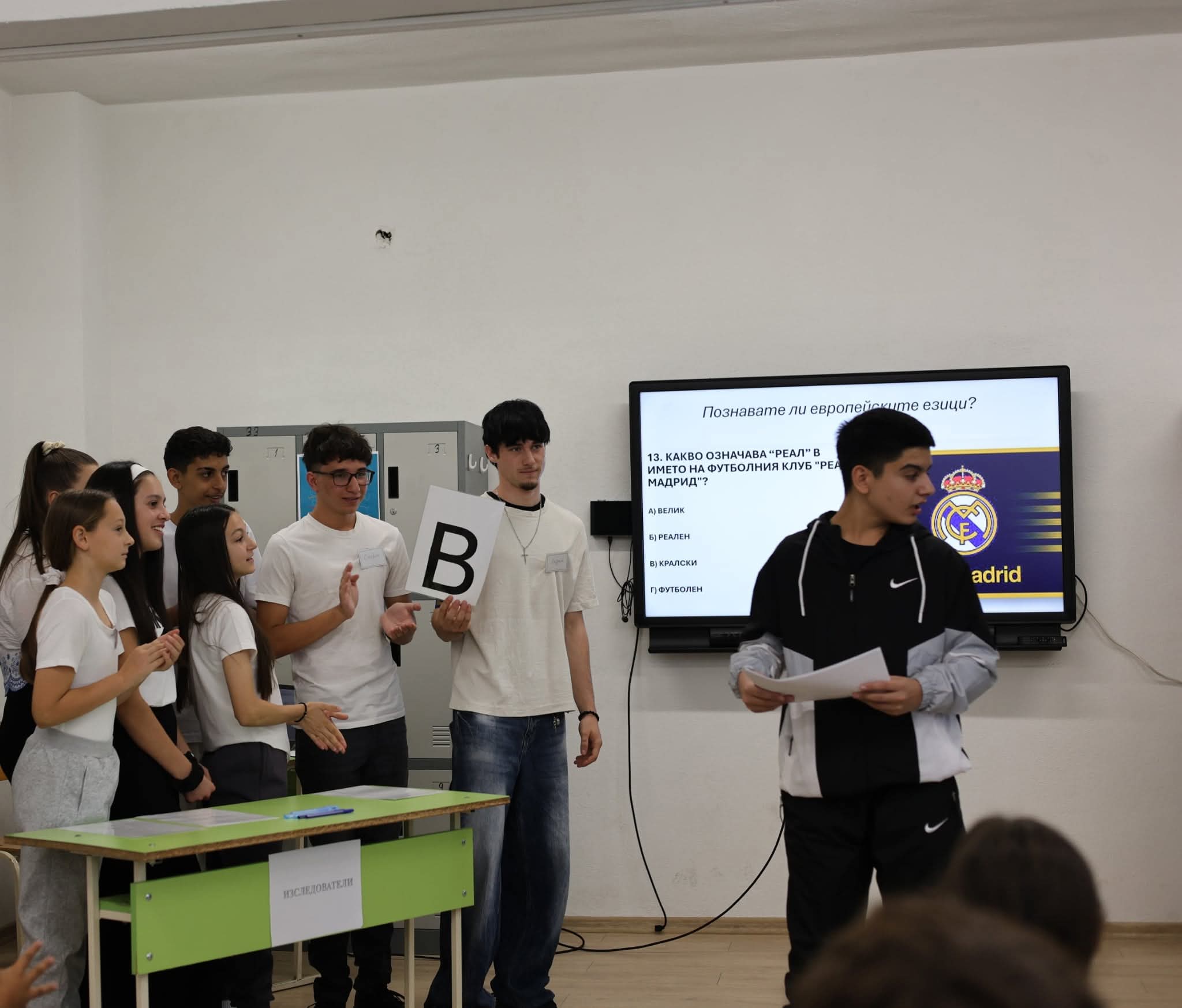 По повод Европейския ден на езиците в СУ „Св. Св. Кирил и Методий“ - гр. Симитли се проведе забавно и образователно състезание – викторина, която събра ученици, учители и представители на ръководството- г-жа Добринска и г-н Дафков. Събитието бе организирано от учителите по чужди езици – г-жа Ръзакова, г-жа Иванова и г-жа Радичева.
