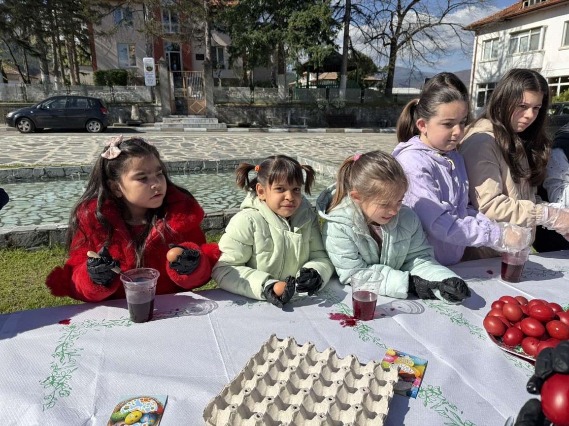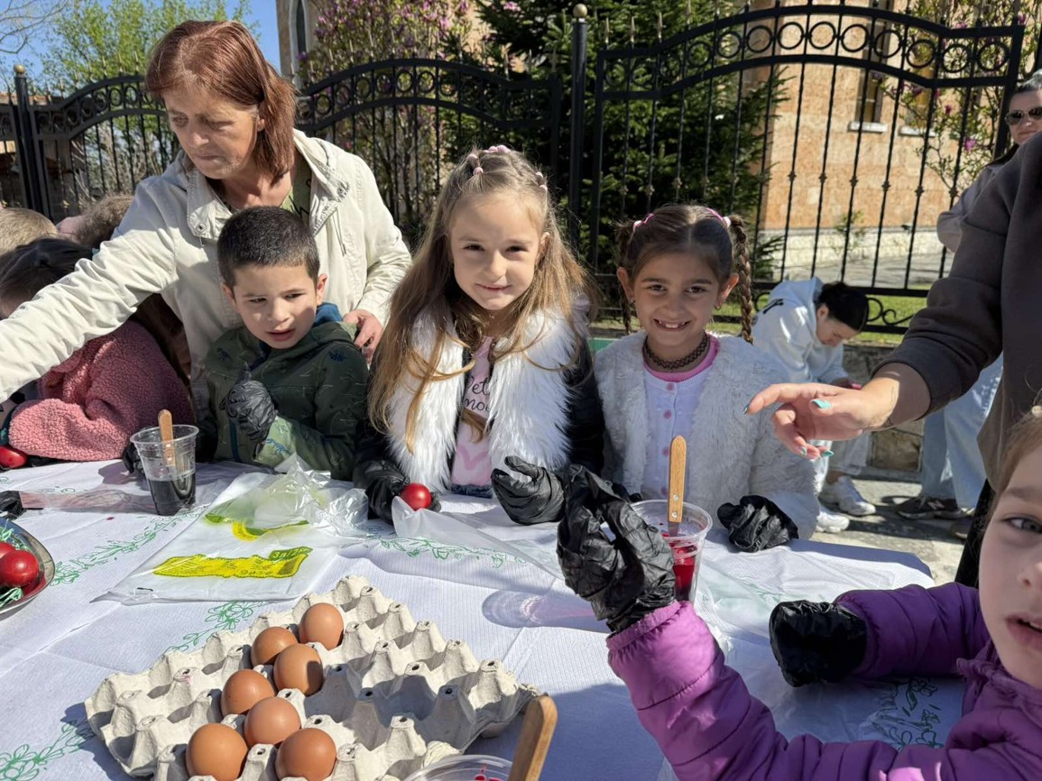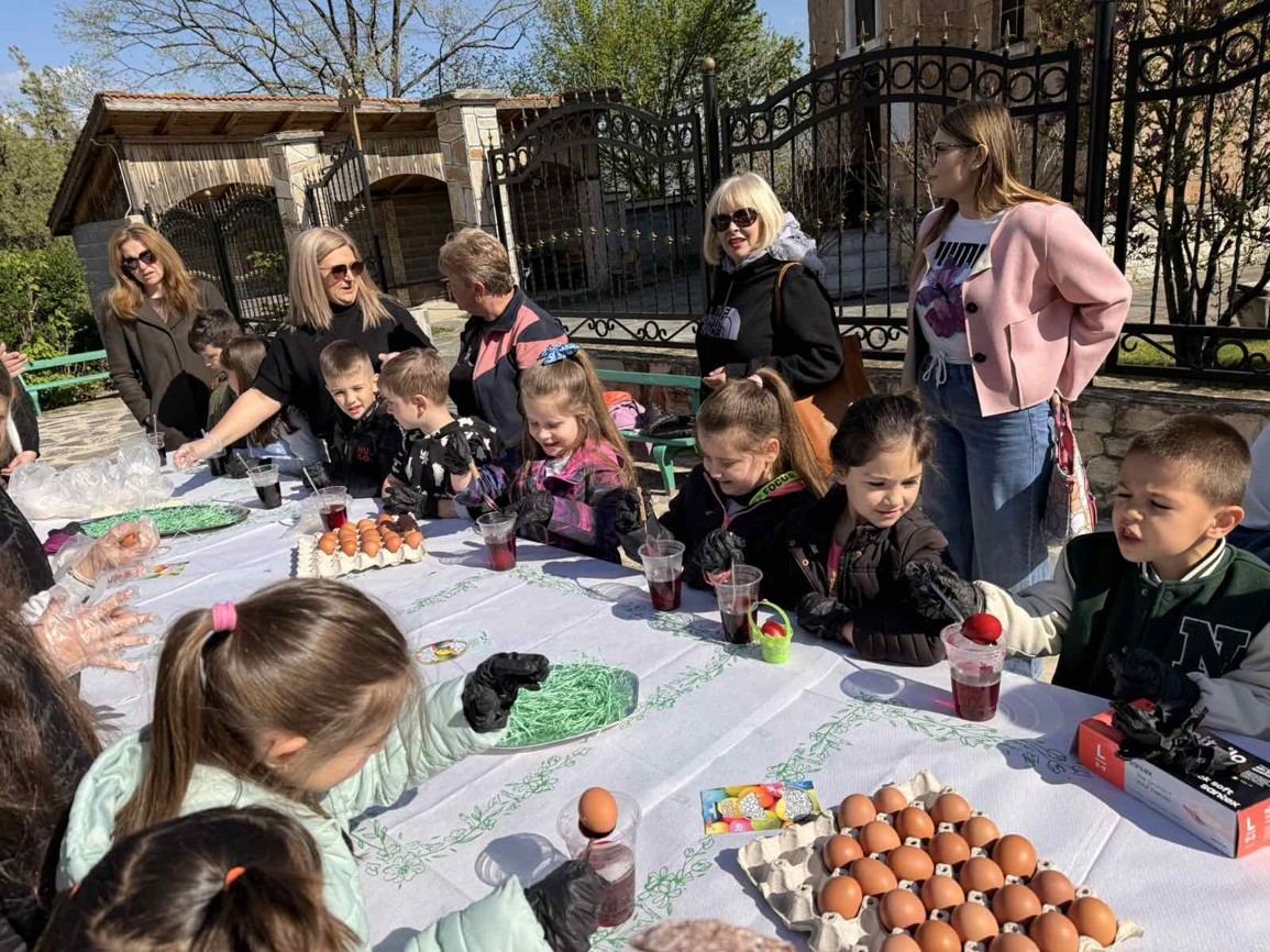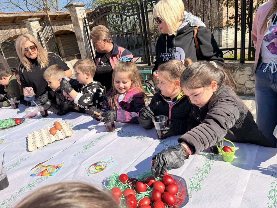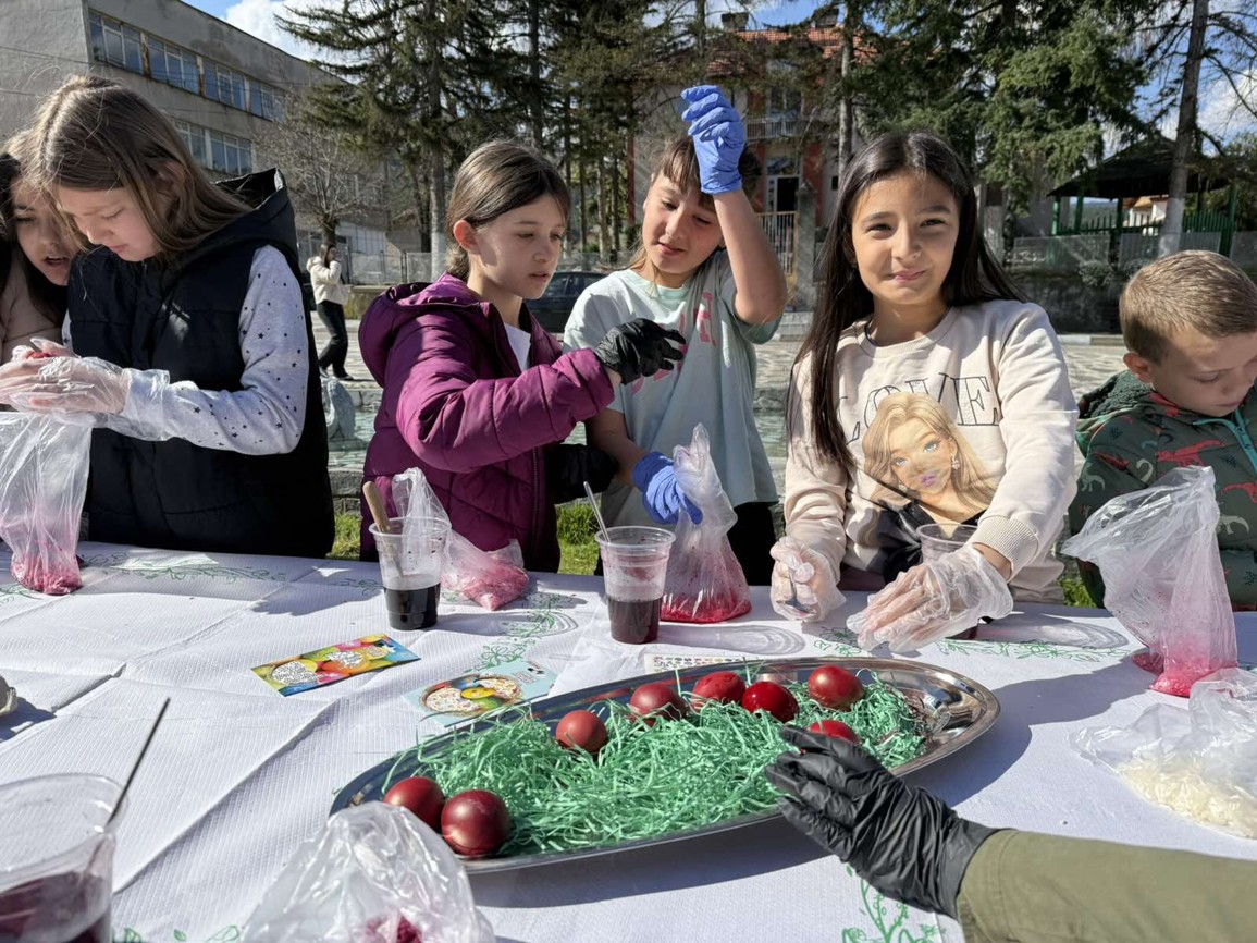 Днес, в слънчевия ден на Велики четвъртък, площадът на село Крупник се изпълни с детски смях, цветове и празнично настроение. Десетки малчугани от селото се събраха, за да боядисват великденски яйца и да спазят една от най-обичаните български традиции.
