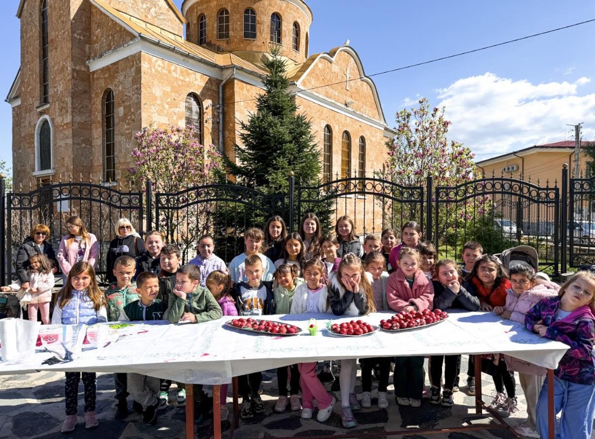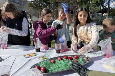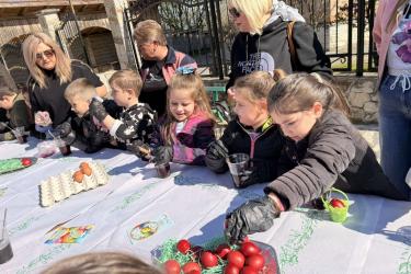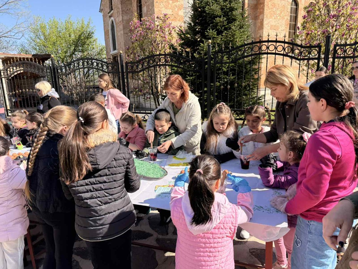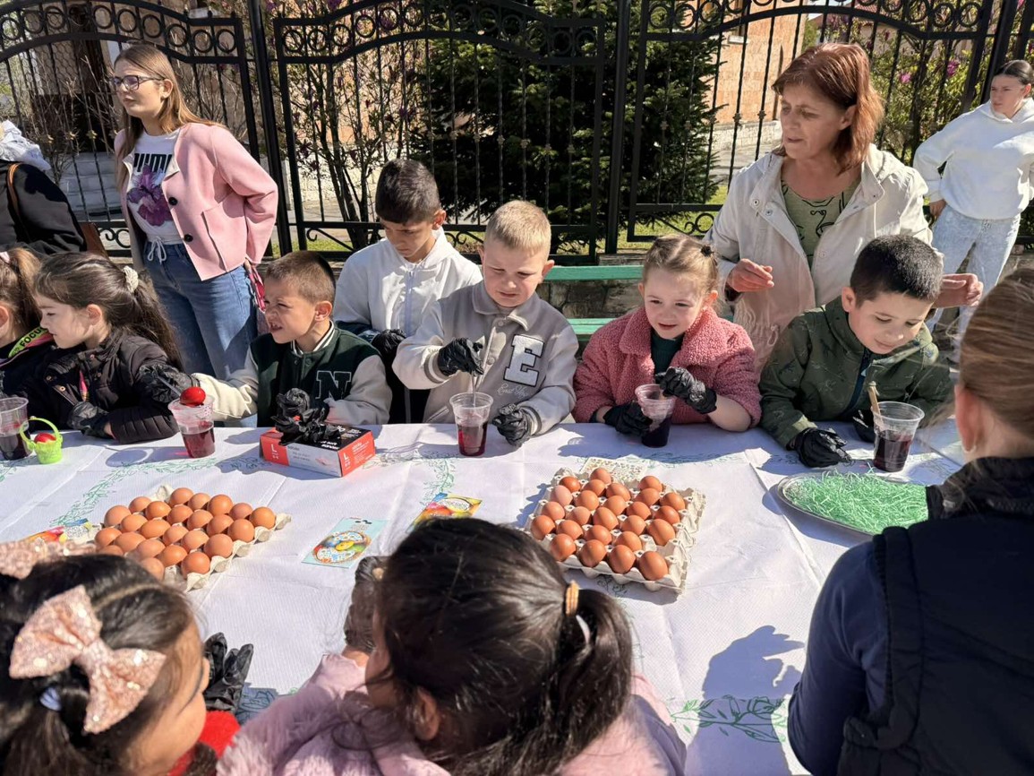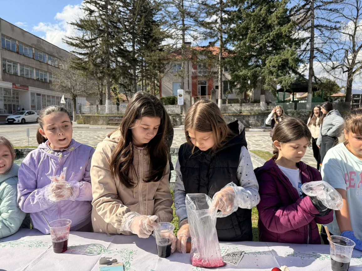 Днес, в слънчевия ден на Велики четвъртък, площадът на село Крупник се изпълни с детски смях, цветове и празнично настроение. Десетки малчугани от селото се събраха, за да боядисват великденски яйца и да спазят една от най-обичаните български традиции.