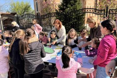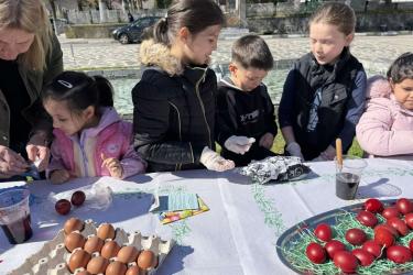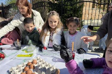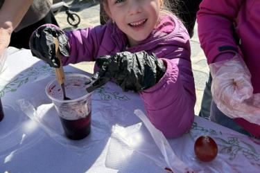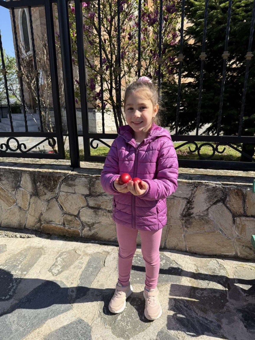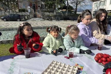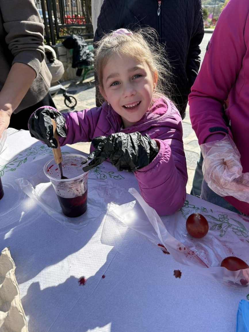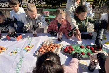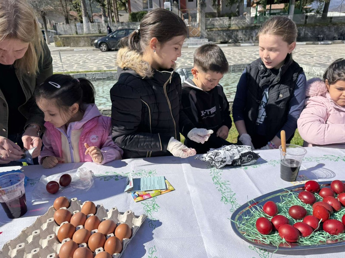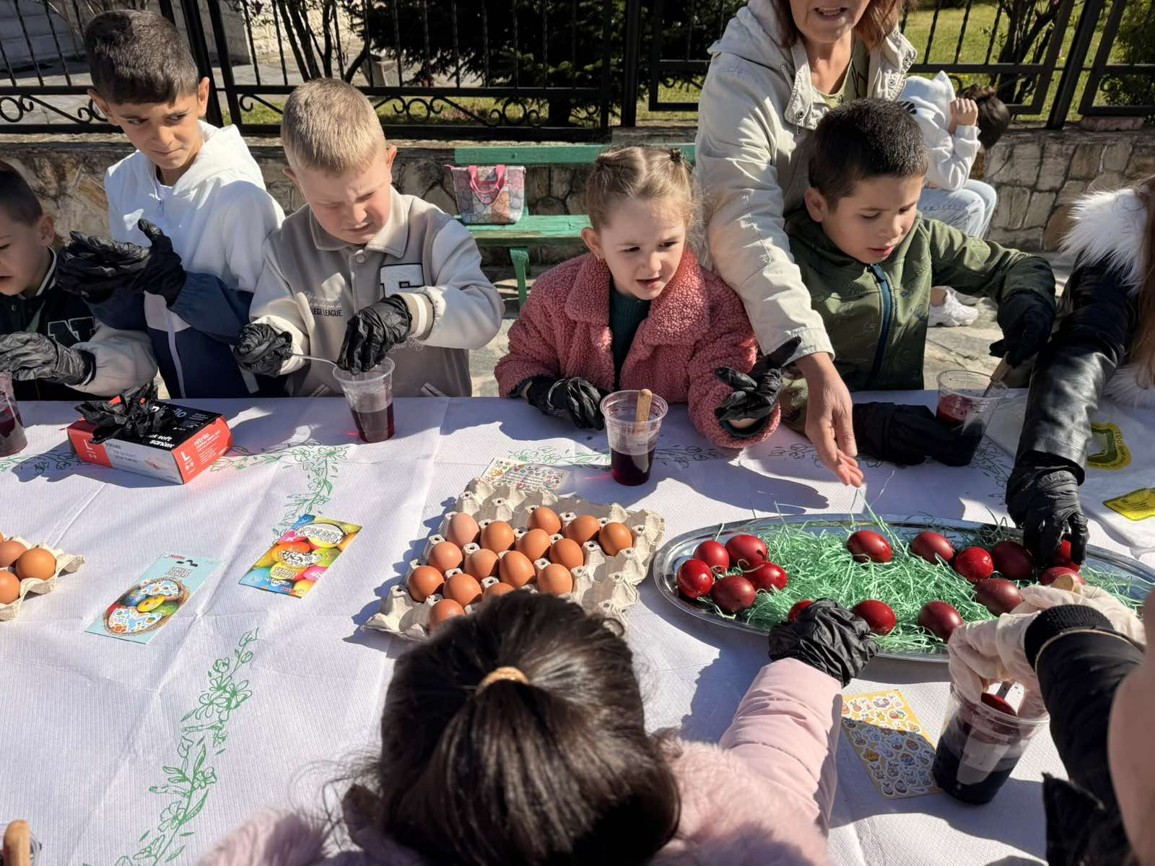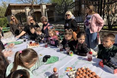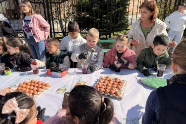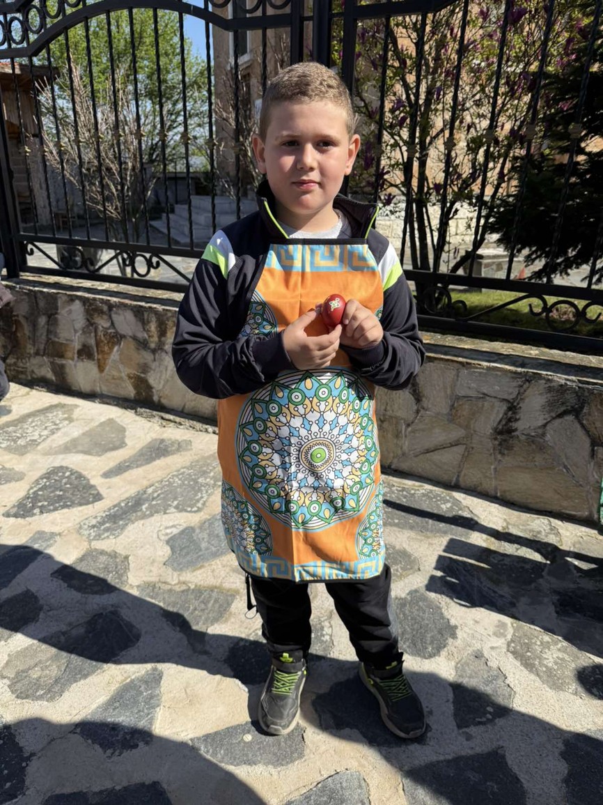С много вълнение и ентусиазъм децата потапяха яйцата в пъстри бои, създавайки истинска палитра от цветове. Първото червено яйце беше боядисано с уважение към традицията, а след това всяко дете даде воля на въображението си, превръщайки яйцата в малки произведения на изкуството.