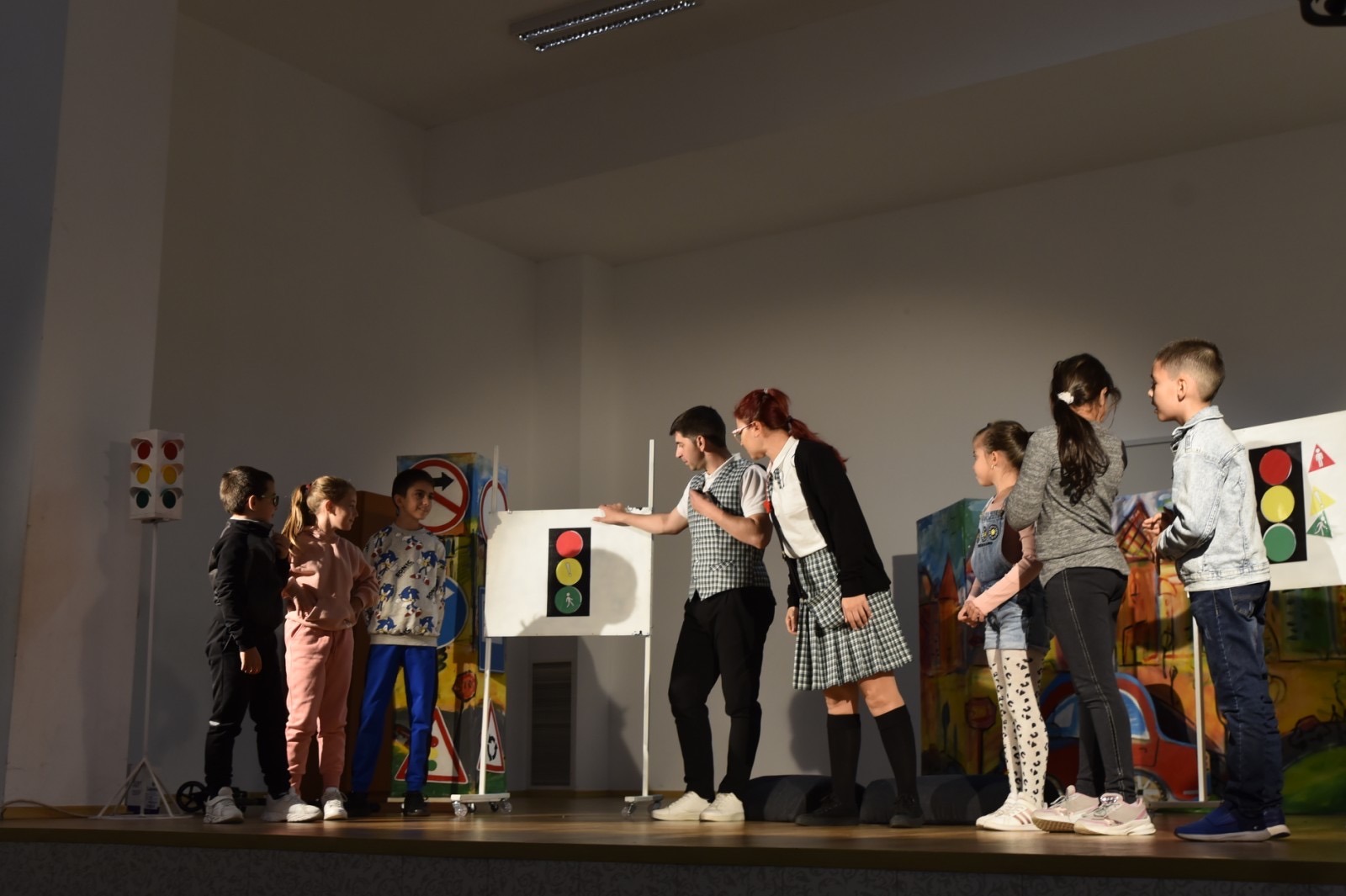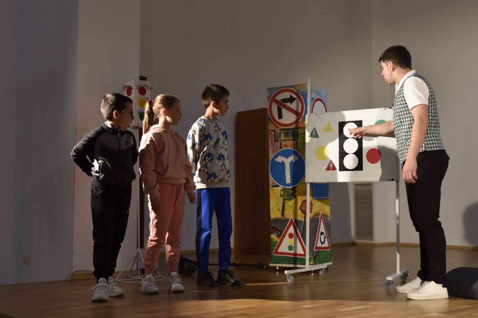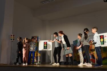 Учениците от първи до четвърти клас на СУ „Св. Св. Кирил и Методий“ – гр. Симитли станаха част от забавна, но и много образователна постановка, свързана с безопасното движение по пътищата и правилата, които трябва да спазват като пешеходци, за да бъдат избегнати пътни инциденти с тяхно участие.