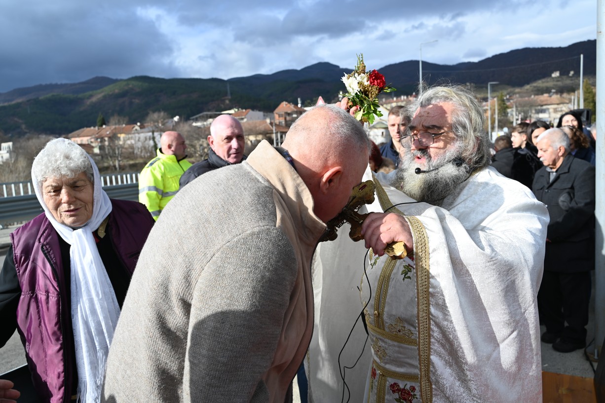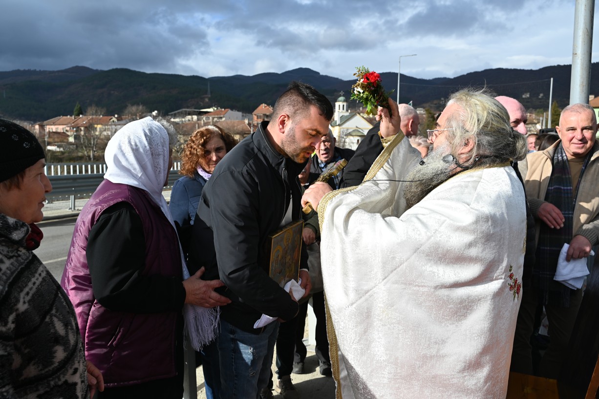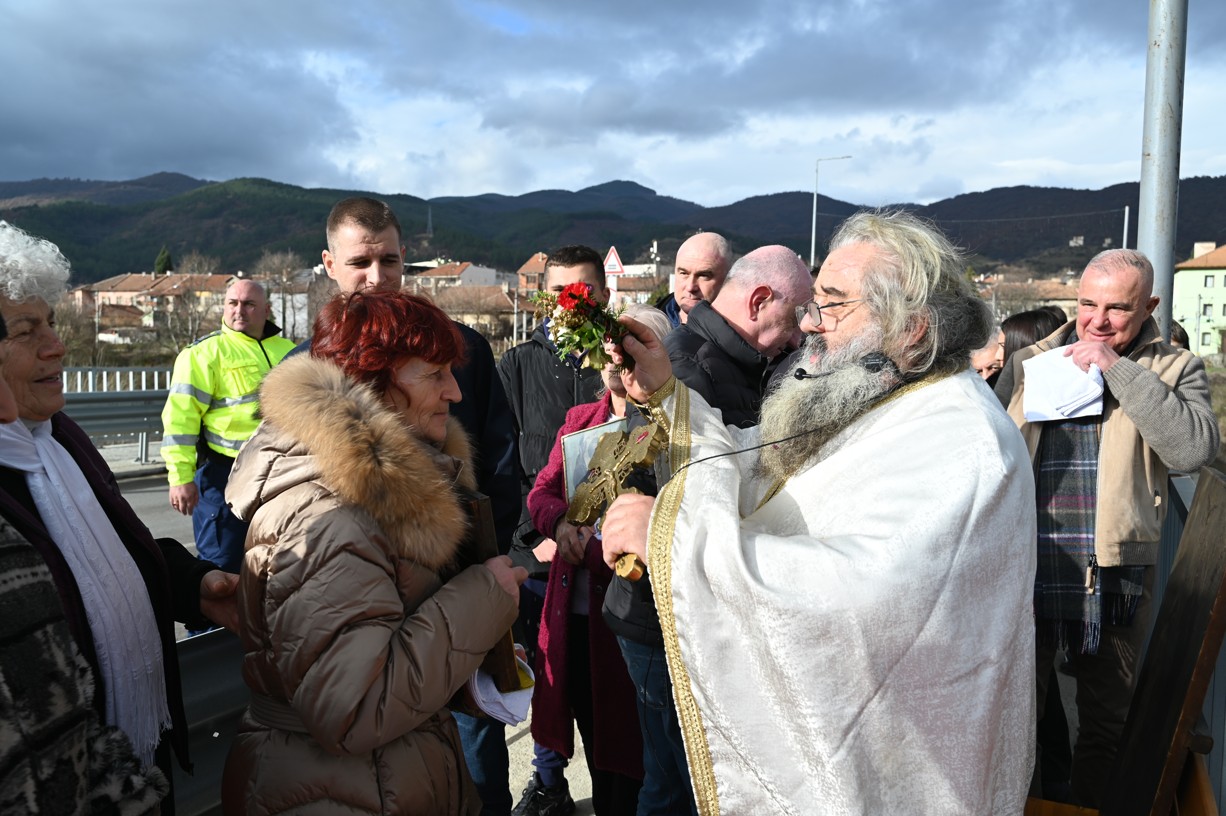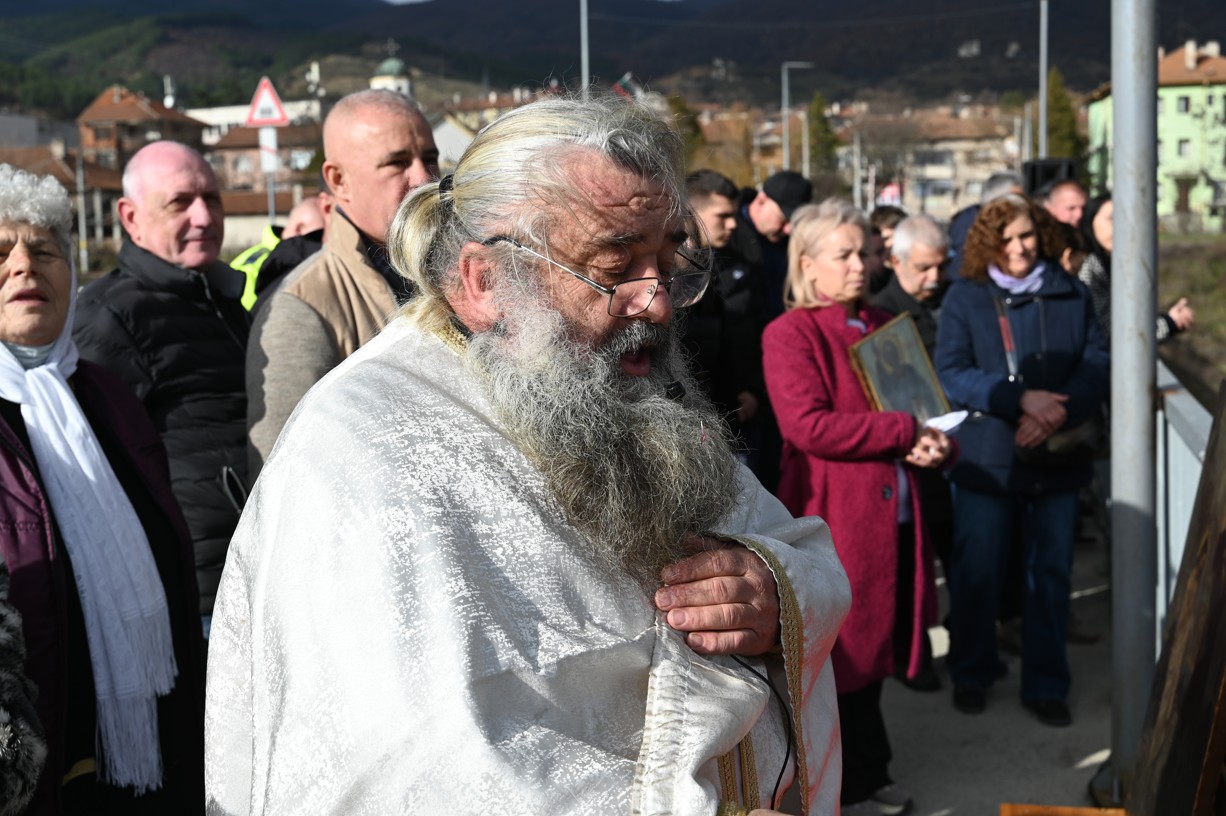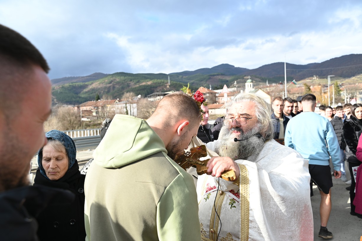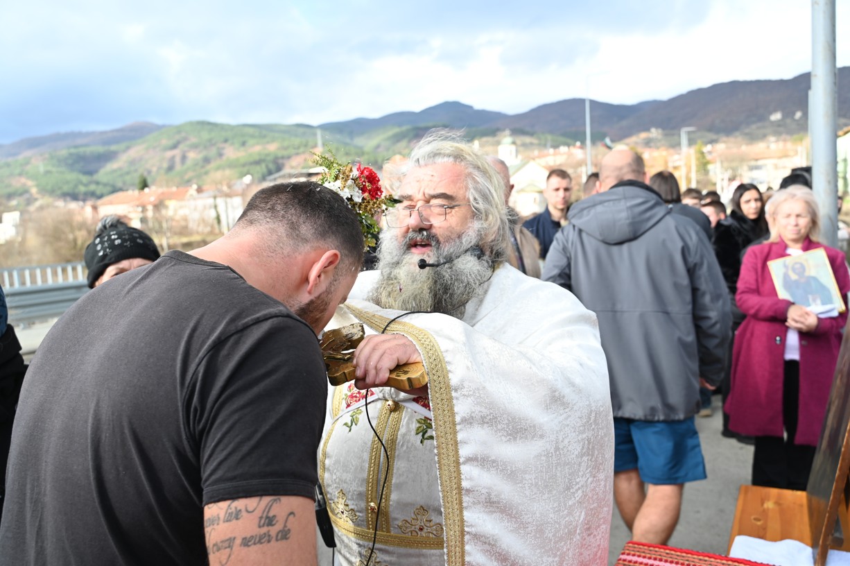 След богослужението с литийно шествие вярващите преминаха от храма до моста над река Струма, където десетки жители и гости на града очакваха водосвета и традиционното хвърляне на кръста. Свещеникът благослови всички смели мъже и младежи, които се включиха в ритуала, малко преди началото на търсенето на светинята във водата.