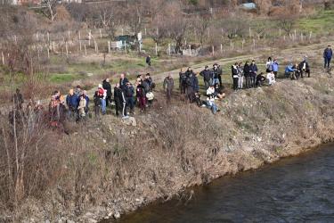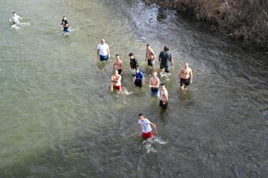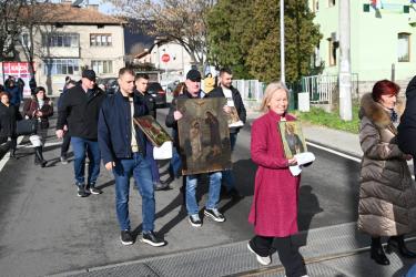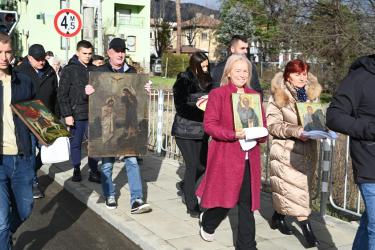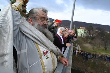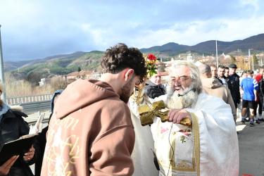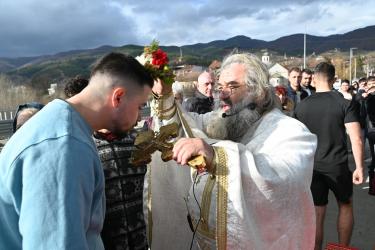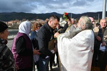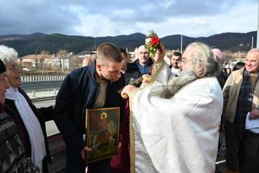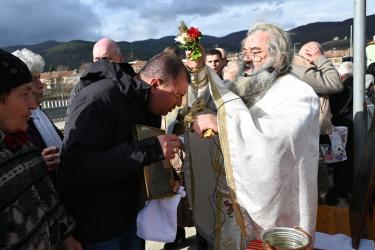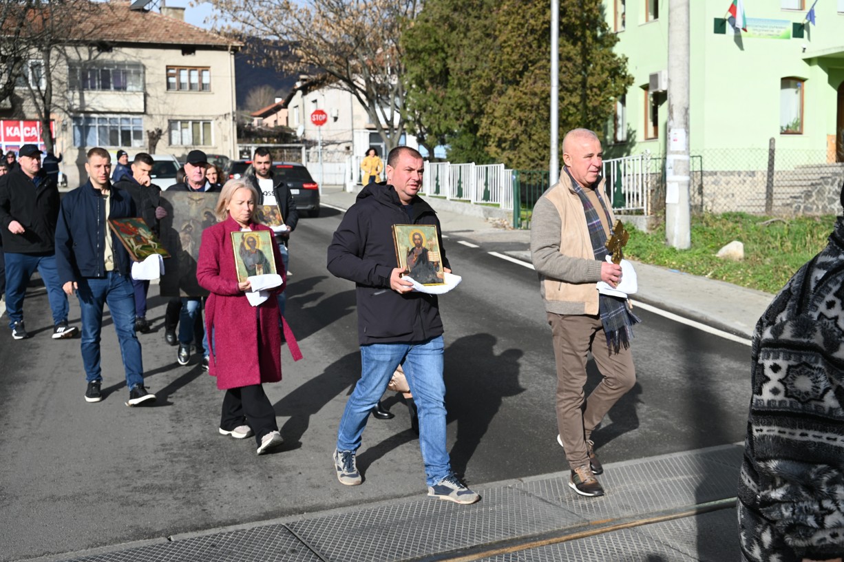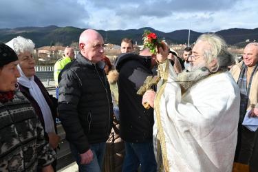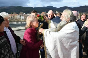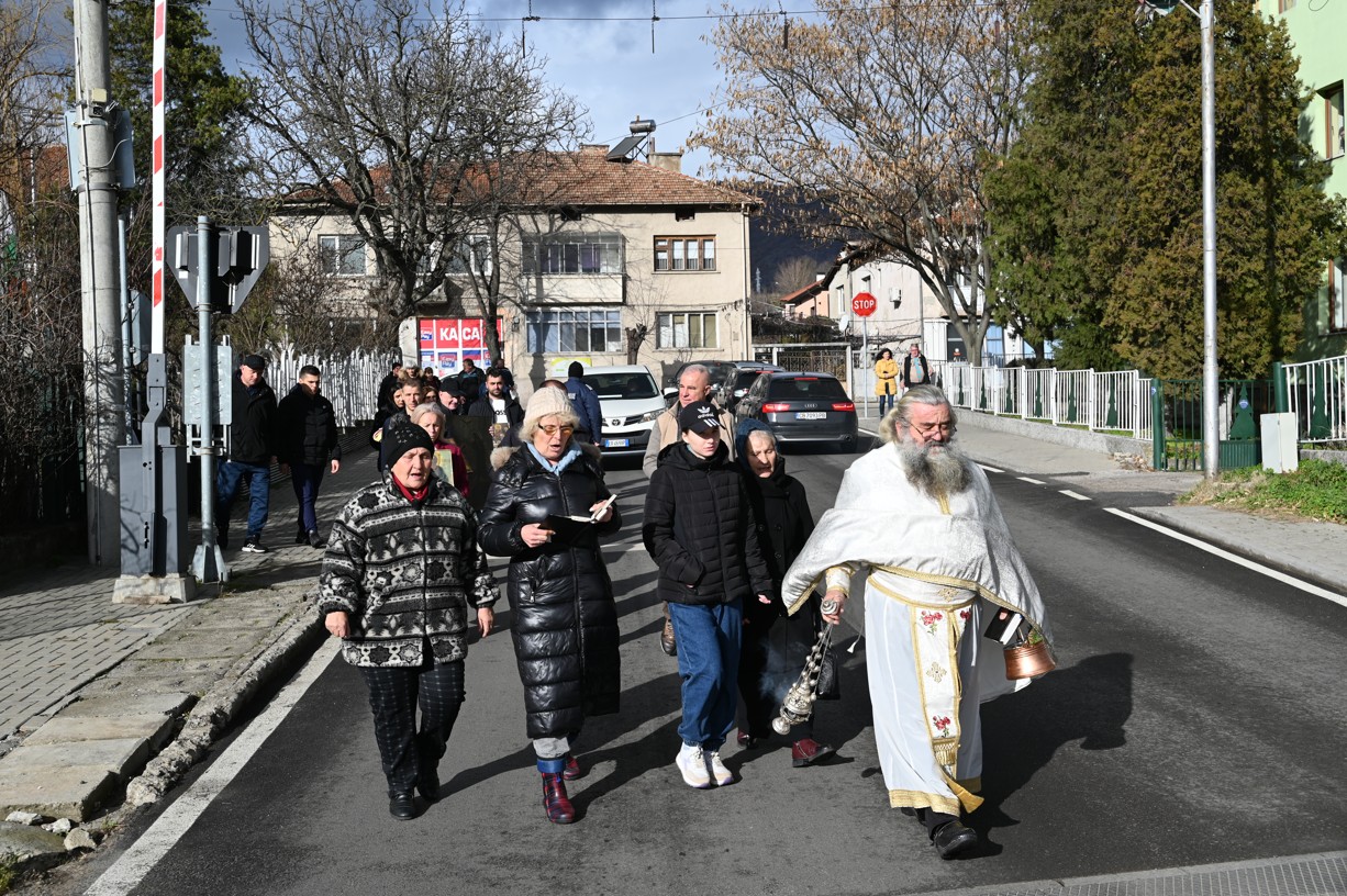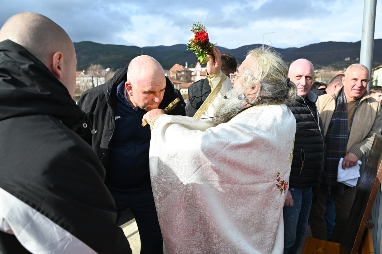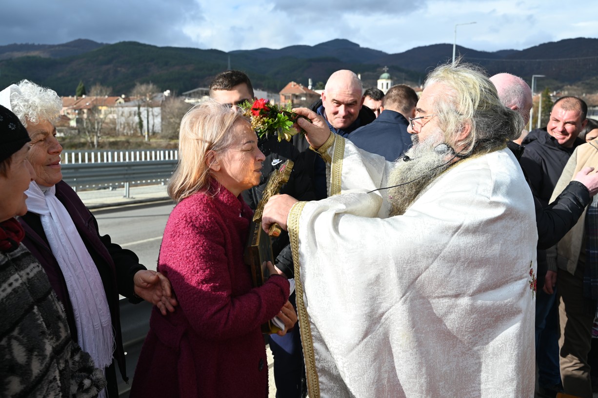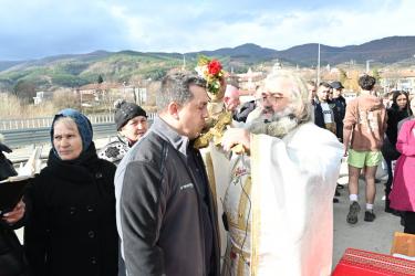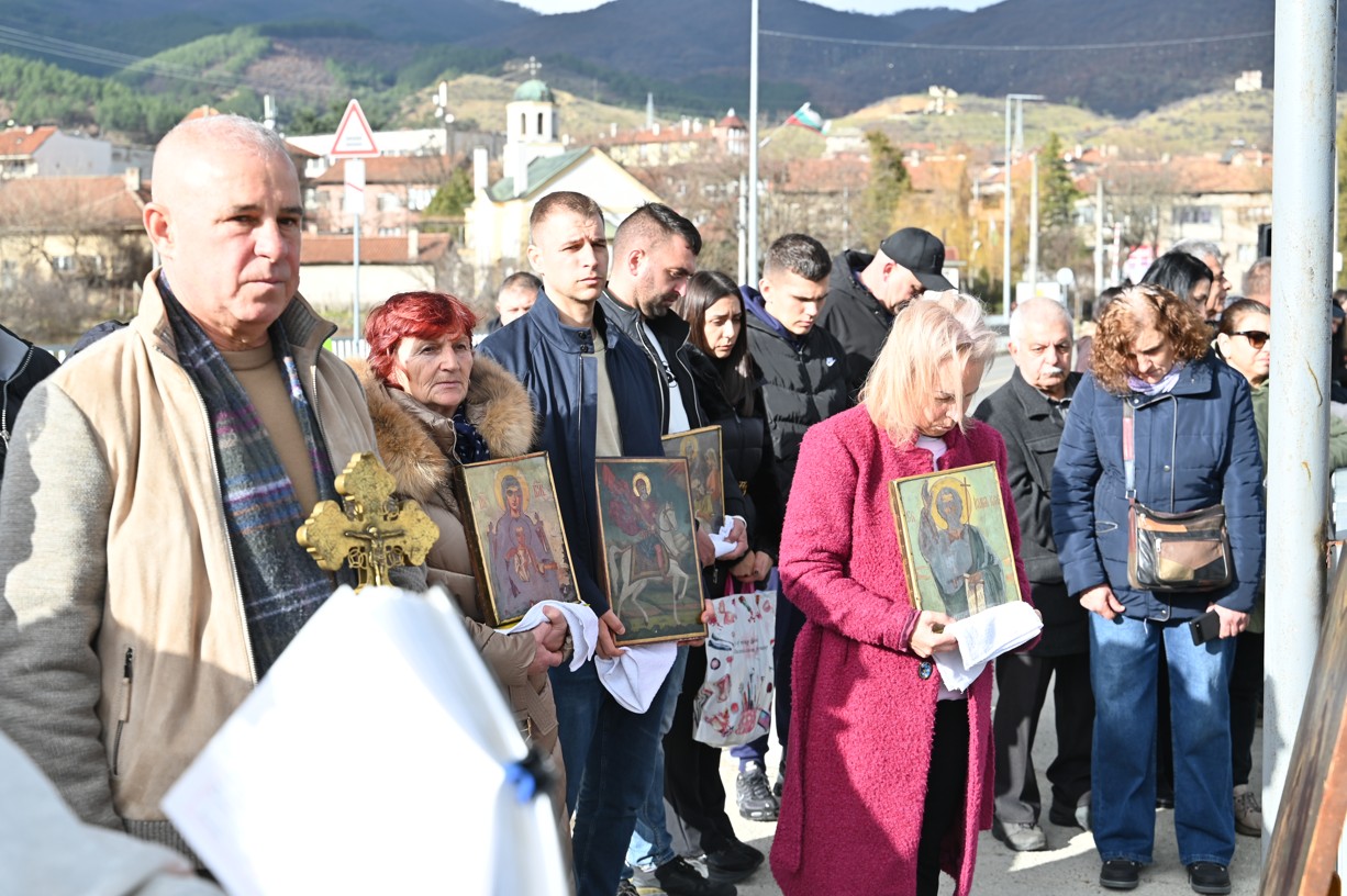След богослужението с литийно шествие вярващите преминаха от храма до моста над река Струма, където десетки жители и гости на града очакваха водосвета и традиционното хвърляне на кръста. Свещеникът благослови всички смели мъже и младежи, които се включиха в ритуала, малко преди началото на търсенето на светинята във водата.