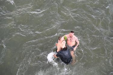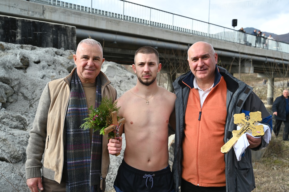 Спас Спасов за втори път извади Богоявленския кръст от водите на река Струма в Симитли. 22-годишният млад мъж пребори 12 участници, които се хвърлиха в ледените води на реката на Йордановден.