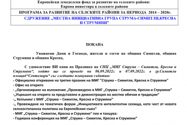Начало Общество Събития Спорт 16 Ноември 2025 Силна есен за „Левски“ (Крупник): убедително 3:0 срещу „Рилци“ Общество Събития Спорт 16 Ноември 2025 „Ветрен“ Полена завърши първия полусезон с гостуваща победа Общество Събития 16 Ноември 2025 Десет години магия и ритъм с клуб „Кръшно хоро“ – село Крупник Общество Свят 16 Ноември 2025 16 ноември – Международният ден на толерантността Общество Събития Традиции 16 Ноември 2025 Публиката в Симитли препълни салона на НЧ „Св. Климент Охридски – 1922“ за големите актриси Силвия Лулчева и Лиза Шопова в „Нощ на театрите“ 2025 Общество Събития Спорт 15 Ноември 2025 Септември (Симитли) загуби от Кюстендил с гол в края на мача Общество Събития Спорт 15 Ноември 2025 Старшата на "Септември" (Симитли) отстъпи с 2:1 у дома на "Беласица" (Петрич) Общество Събития Традиции 15 Ноември 2025 Симитли празнува „Нощ на театрите“ с детски спектакъл, комедия и благотворителна кауза Общество Традиции 15 Ноември 2025 От днес започват Коледните пости - какви са традициите и поверията за този ден Общество Събития 13 Ноември 2025 Здравните медиатори на община Симитли с национално отличие за екипна работа Общество Свят 13 Ноември 2025 Днес, 13 ноември, отбелязваме три международни празника Общество Събития 12 Ноември 2025 Модата като огледало на духа – утре, среща в „НАЧИ Мода Клуб“ Общество Събития 12 Ноември 2025 През очите на децата – 90 години храм „Св. Архангел Михаил“ – село Крупник Общество Събития Спорт 12 Ноември 2025 Кметство село Долно Осеново организира благотворителен футболен турнир по случай „Седмицата на сираците“ Общество Събития 12 Ноември 2025 Ученици от община Симитли ще посетят „Ден на отворените врати“ във военно формирование 26 400 Всички новини Събития Спорт 27 Август 2022 40 топки подарък за малките звезди от Септември (Симитли), класирали се на трето място в турнира "Евима Къп 2022" – Банско Общество Събития Традиции 27 Август 2022 Конкурс „Аз обичам Крупник“ и забавно тържество зарадва най – малките жители на селото по повод днешния празник Общество Събития Спорт Традиции 27 Август 2022 Ветераните на Левски (Крупник) и Миньор (Брежани) поставиха началото на празника на Крупник Събития Спорт 27 Август 2022 Септември (Симитли) ще се бори за трите точки срещу Оборище (Панагюрище) Традиции 27 Август 2022 Почитаме преподобни Пимен Общество Събития Традиции 27 Август 2022 Кукерите от група "Център" на село Крупник събраха близки и приятели на голям празник Спорт 26 Август 2022 Официално: Симитличанинът Ради Кирилов е футболист на ЦСКА 1948 Общество Събития Традиции 26 Август 2022 Крупник и Брежани с кукерски банкети днес и утре Традиции 26 Август 2022 Почитаме св. св. Адриан и Наталия Общество Събития 25 Август 2022 Консултации за състава на СИК бяха проведени в Симитли Общество Политика Събития 25 Август 2022 В Симитли ще се проведат консултации за състава на СИК за изборите за народни представители на 2 октомври Традиции 25 Август 2022 Почитаме светец, приел кръщение от св. ап. Павел Общество Събития Традиции 24 Август 2022 Крупник празнува с Борис Дали, Иван Дяков, Малин Домозетски и други звезди Общество Събития 24 Август 2022 Празникът на Симитли наближава! Молим Ви да почистите и освободите тротоарните площи Общество Събития 24 Август 2022 Община Симитли извършва подмяна на уличните лампи с енергоспестяващи Общество Събития Традиции 24 Август 2022 Отбелязахме 97-годишнина от з