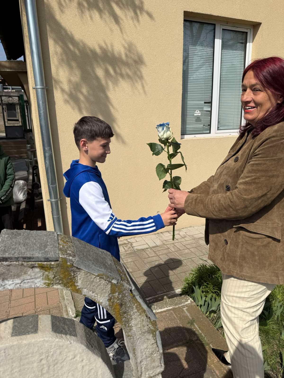 Тазгодишната тема на Световния ден на водата – „Където водата тече, равенството расте“, насочва вниманието към значимата роля на жените във водния сектор. В знак на признателност учениците поднесоха символичен жест – сини рози на дамите, работещи във ВиК.