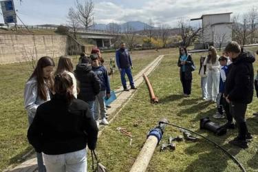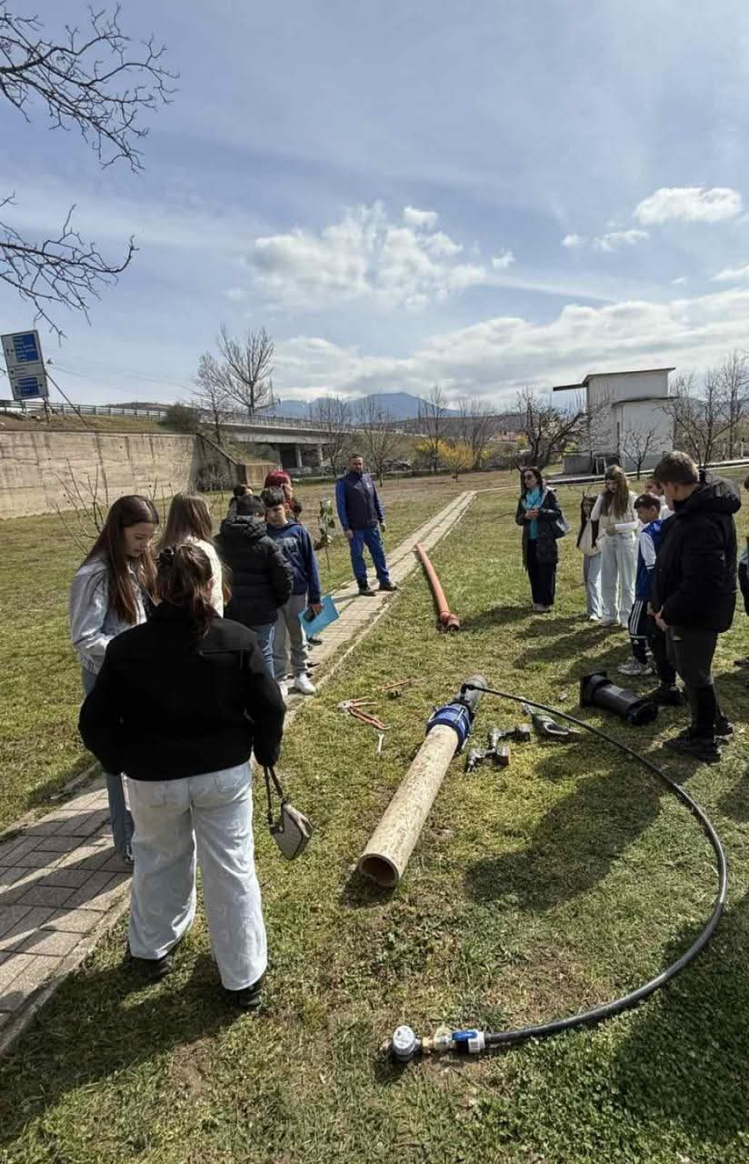 Госпожа Лиляна Айкова – технически ръководител на ВиК Симитли, запозна учениците с пътя на водата – от водохващането в прохода Предел до домовете на жителите в общината. Посещението продължи с изключително интересна и полезна демонстрация – подмяна на стар водопровод, дейност с ключово значение за подобряване на водоснабдяването.