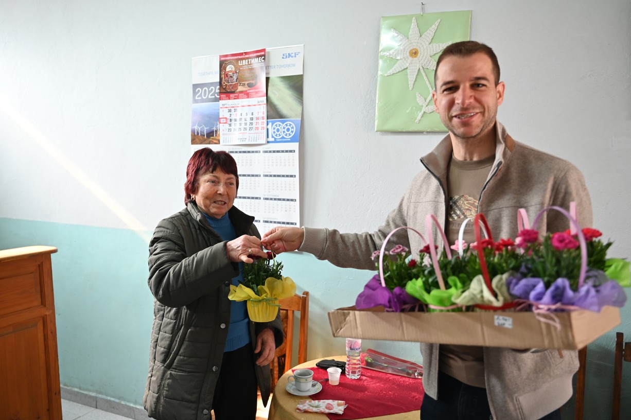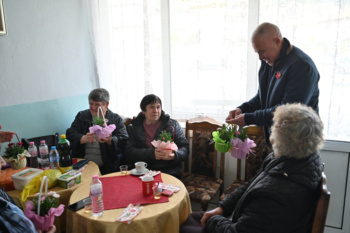 С много внимание и уважение към дамите, гостите им поднесоха красиви цветя – мил жест, който донесе още повече радост и настроение в празничния ден. Разбира се, истински празник не може без сладкиш, затова празничната атмосфера беше допълнена и от вкусно почерпка, която направи срещата още по-топла и приятна.