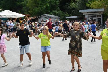 Водосветът бе отслужен от отец Яне, след което празничната програма продължи на площада в селото. Малки момичета от Брежани изненадаха присъстващите с танц в чест на юбилея. Всички гости имаха възможност да се веселят от сърце и да се насладят на изпълненията на певицата Цветелина и оркестър „Живко бенд“. Дълги хора се виеха на площада, обединявайки поколенията в радост и почит към миньорската традиция.