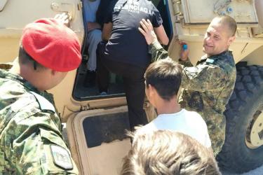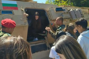 Още с прекрачването на портала, учениците бяха посрещнати от редици тежка и лека бойна техника. Военнослужещите с търпение обясняваха предназначението на всяка машина, позволявайки на децата не само да ги разгледат отблизо, но и да се качат в кабините, представяйки си, че са на истинска мисия. След което учениците задаваха въпроси относно техническите характеристики, мощността и поддръжката на експонатите.