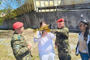 Вратата към света на дълга и честта се отвори широко за учениците от 8.а клас, които посетиха военно формирование 26400 за един незабравим Ден на отворените врати. Учениците бяха придружени от своя класен ръководител Виктория Руменова – старши учител по биология и здравно образование и ЗДУД г-жа Ваня Добринска, които заедно с децата се потопиха в атмосферата на военното ежедневие. Събитието съчета по уникален начин реалната бойна подготовка с детското любопитство и силата на въображението.