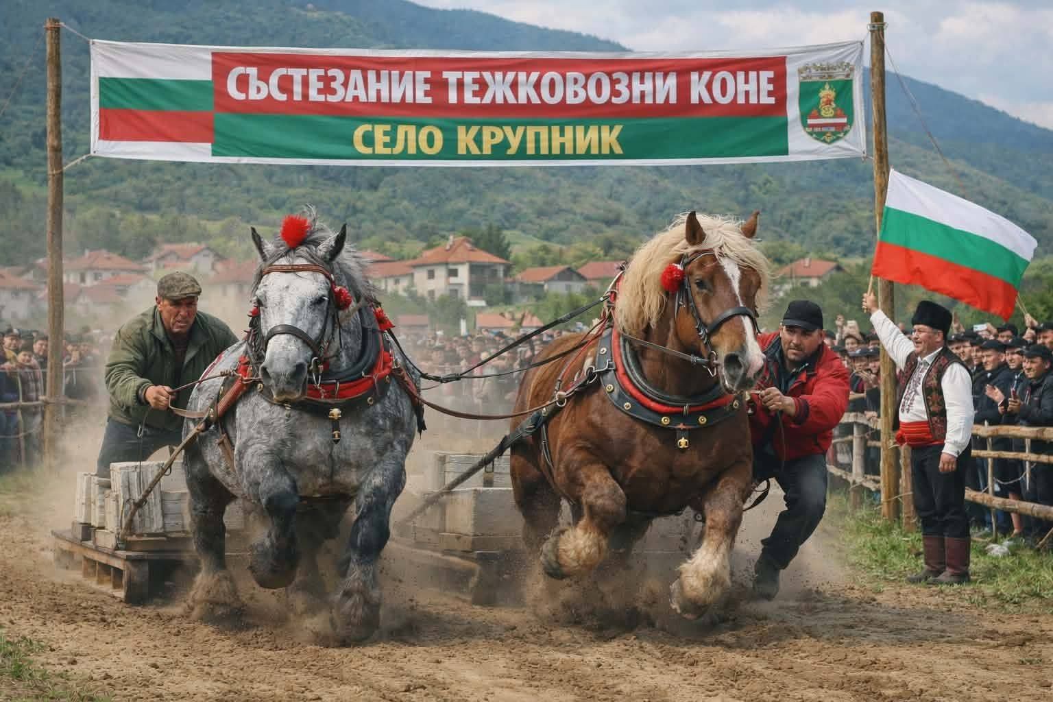 Планираното традиционно състезание с тежковозни коне, което трябваше да се проведе на 28 март, следващата събота, в местността Беглико край село Крупник, се отменя.