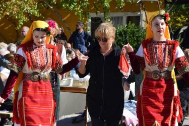 И се плисна красотата на танцьорите от КУД „Гоце Делчев“ от Делчево, Р Северна Македония, водени от председателката на дружеството д-р Соня Мавродиева и художествения им ръководител Зенил Стручни.