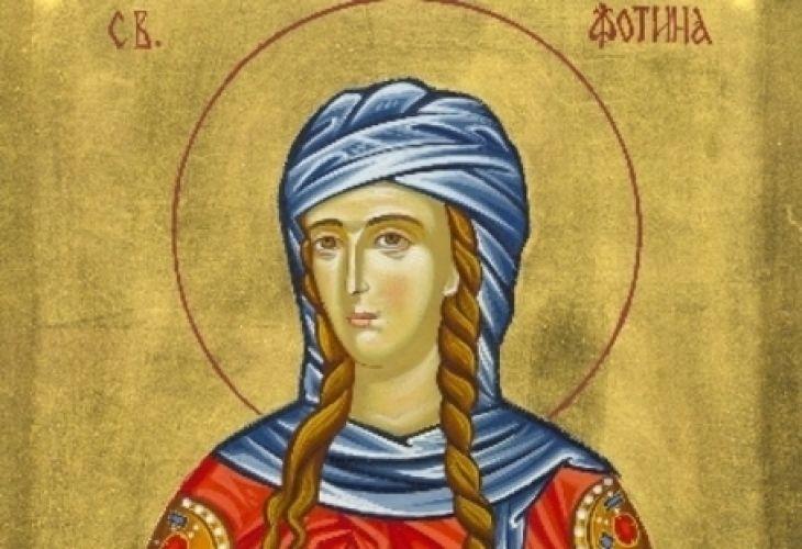 Светицата е позната като Св. мъченица Фотина Самарянката. Св. мъченица Фотина била жената, с която Спасителят беседвал при Якововия кладенец.