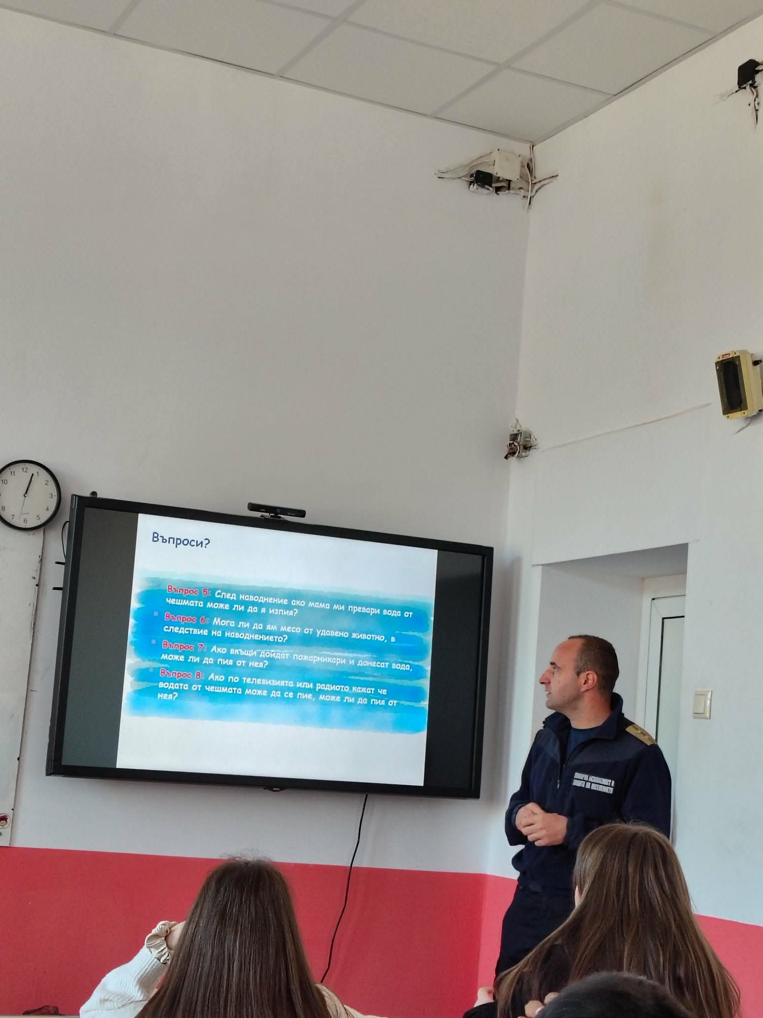 Обучителната среща завърши с дискусия, по време на която учениците задаваха въпроси и получаваха допълнителни разяснения. Те си тръгнаха с ценни насоки за адекватни реакции при пожари, бедствия и други извънредни ситуации — знания, които увеличават тяхната информираност, отговорност и готовност да реагират.
