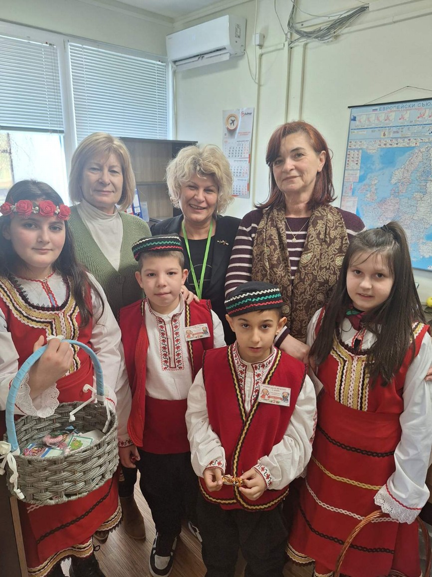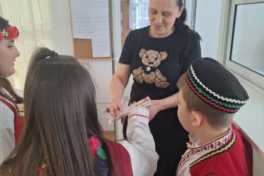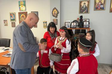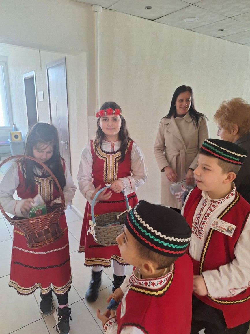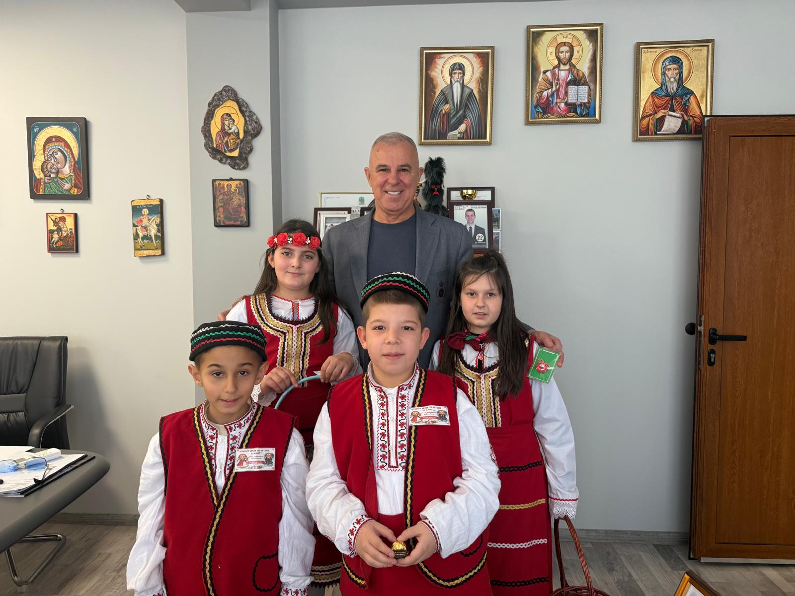 С много усмивки и вълнение учениците лично поднесоха на кмета на община Симитли г-н Апостол Апостолов мартеница – символ на здраве, сила и ново начало, с пожелание за благоденствие и успешна година.