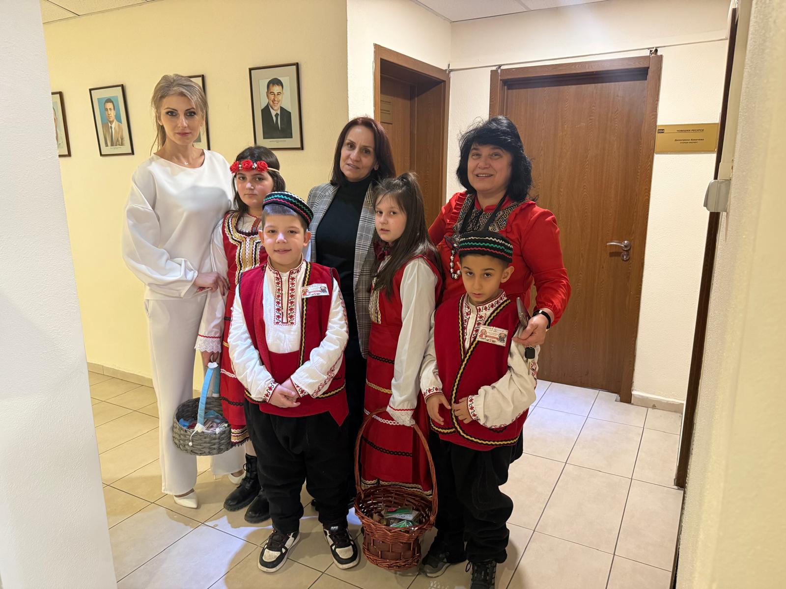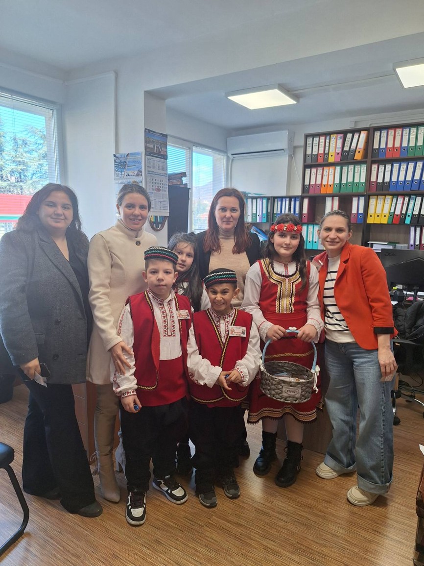 Днес възпитаници на СУ „Св. Св. Кирил и Методий“ – село Крупник, придружени от педагога г-жа Гергана Ралинска, посетиха Общинска администрация – Симитли по повод един от най-обичаните български празници – Баба Марта.