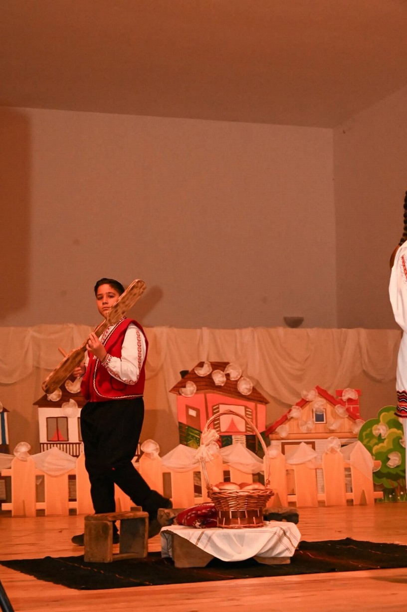 Спектакълът започна с празнично възвестяване чрез клепало и представяне на вярванията, свързани с Игнажден. С много талант и вдъхновение учениците пресъздадоха традициите на Бъдни вечер и Коледа. На сцената коледари пяха, танцуваха и благославяха за здраве и берекет. След тях се появиха сурвакарчета с автентични сурвачки, които наричаха по стар български обичай.
