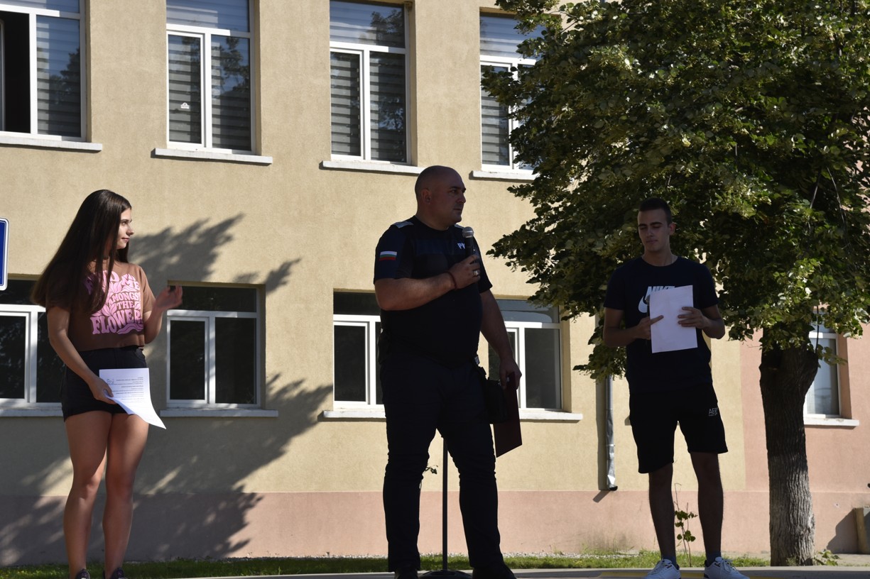 По повод важната дата в двора на училището бе организирана специална програма, в която участие взе полицейският инспектор Тончо Моралиев. Водещи на събитието бяха Елизабет от 10 „А“ клас и Николай от 11 „А“ клас. Те проведоха и викторина със своите съученици и приятели, в рамките на която учениците отговаряха на въпроси, свързани с безопасността на движението.