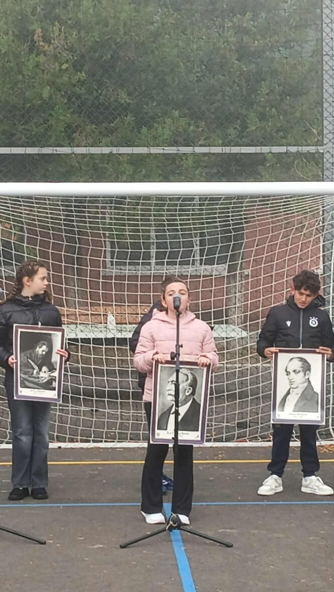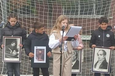 В тържествената програма учениците от 5., 6. и 7. клас представиха рецитал, с който припомниха заветите на великите личности от миналото. Те цитираха мъдрите думи на хан Омуртаг: „Човек и добре да живее — умира. И друг се ражда. И нека родените по-късно помнят!“