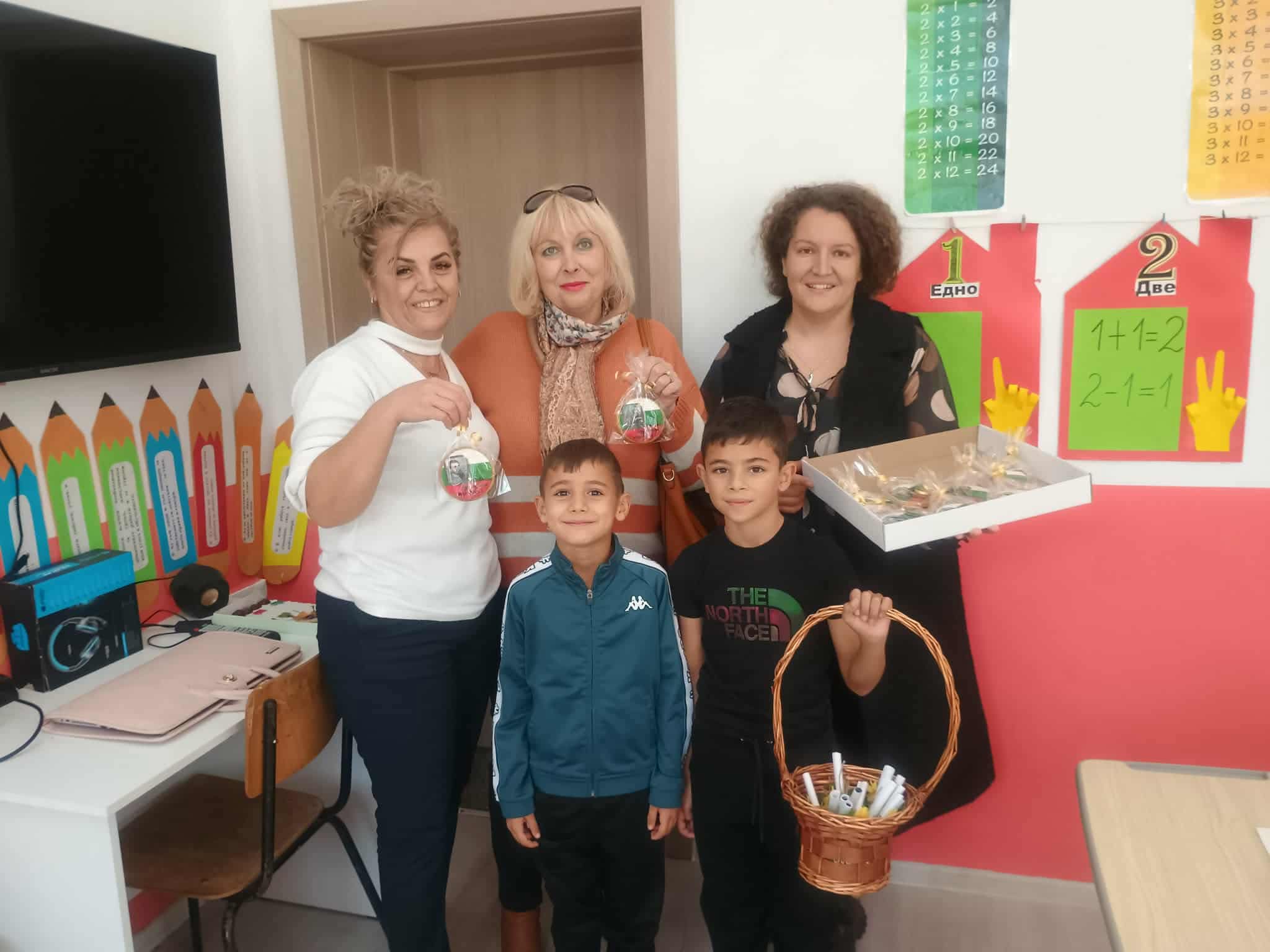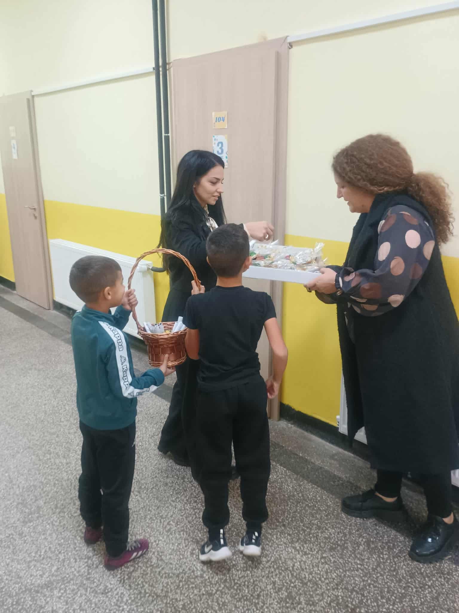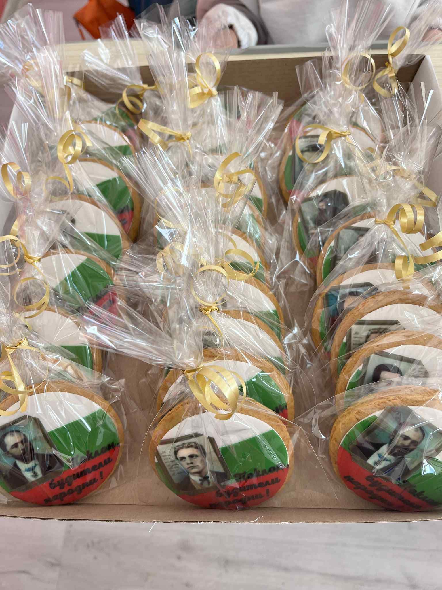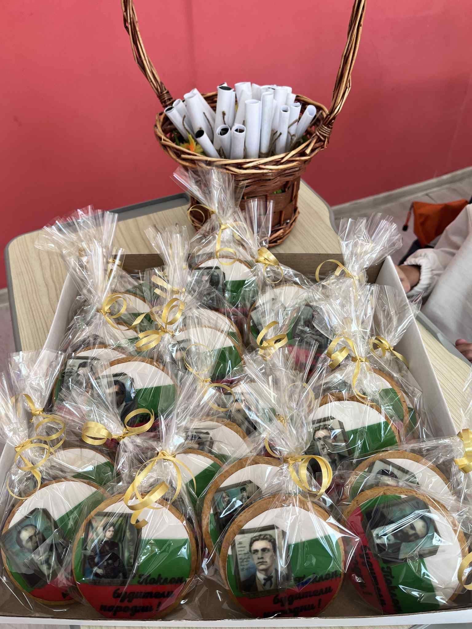 В духа на празника учениците от 2. клас поднесоха на своите учители вкусни бисквитки „Лик с две очи на будител“ и свитъци с мъдри мисли – трогателен жест на признателност и уважение.