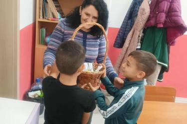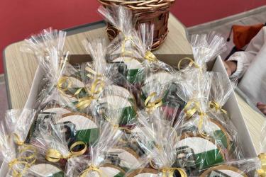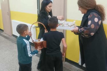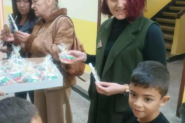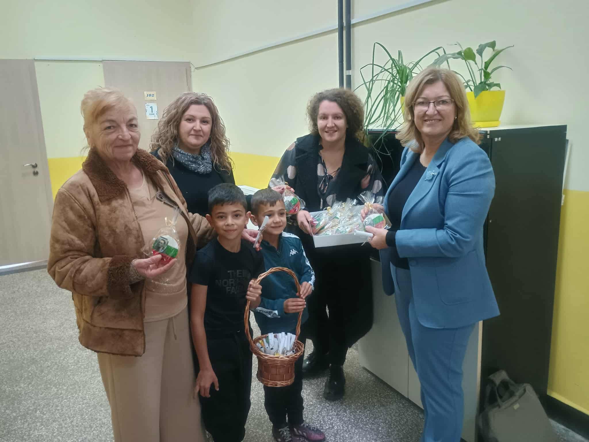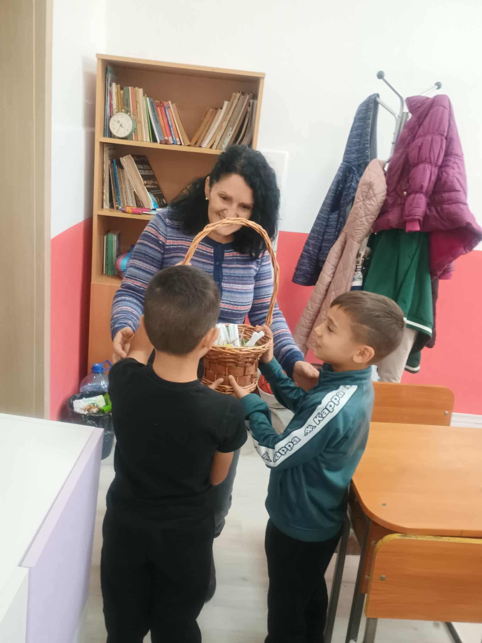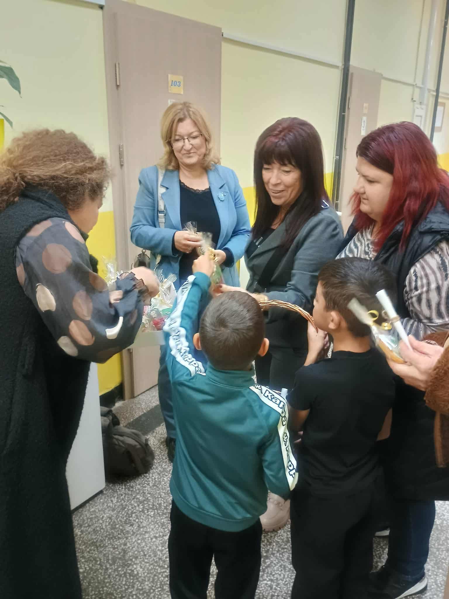 В духа на празника учениците от 2. клас поднесоха на своите учители вкусни бисквитки „Лик с две очи на будител“ и свитъци с мъдри мисли – трогателен жест на признателност и уважение.