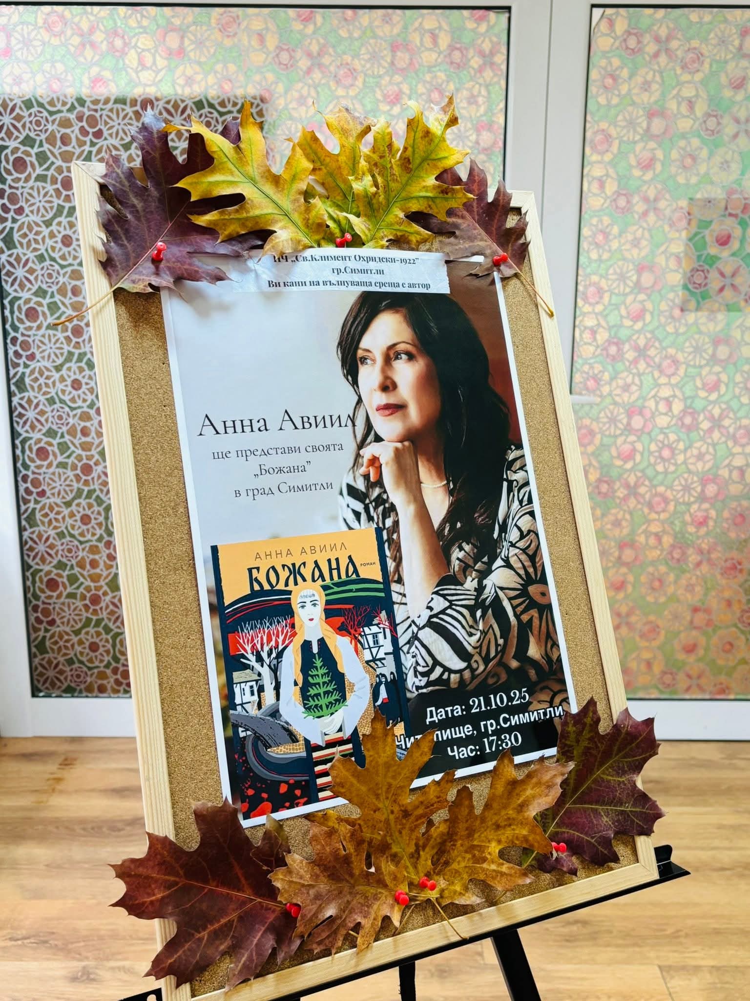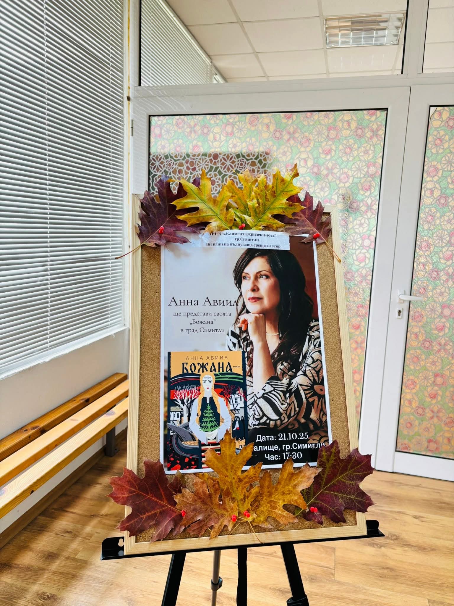 Народно читалище „Св. Климент Охридски – 1922“ – град Симитли бе домакин на една вълшебна вечер, изпълнена с слово, емоции и вдъхновение. На 21 октомври, от 17:30 часа, залата на читалището се превърна в истински дом на духовността, където думите оживяха с топлотата и светлината на писателката Анна Авиил. Тя представи своята вълнуваща книга „Божана“ пред многобройна публика – общественици, жители и гости на община Симитли, които имаха удоволствието да се докоснат до нейното творчество.